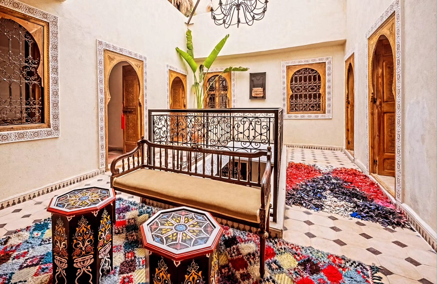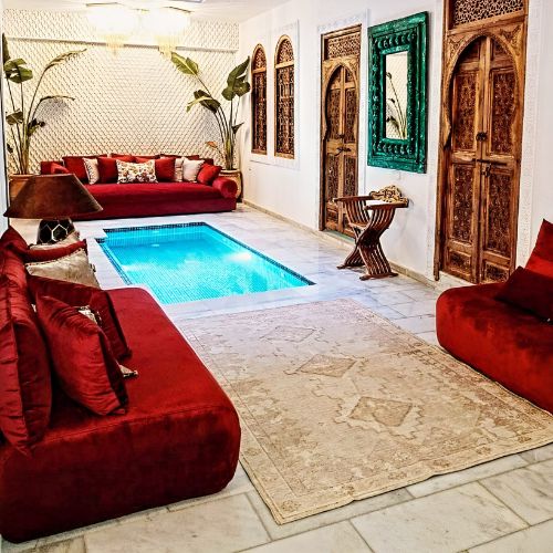Niché au cœur vibrant de la médina de Marrakech, Riad Dar Lghizlane est bien plus qu’un simple lieu d’hébergement : c’est une invitation à la sérénité, à la beauté et à l’art de vivre marocain. Derrière ses portes en bois sculpté, se dévoile une oasis de paix, où le chant des oiseaux se mêle au clapotis de la fontaine et au parfum envoûtant du jasmin. Sous la lumière dorée du patio, le temps semble suspendu. Les murs en tadelakt, les zelliges aux couleurs chatoyantes et les lanternes artisanales racontent l’histoire d’un Maroc authentique, raffiné et intemporel. Chaque détail du Riad Dar Lghizlane a été pensé pour offrir à ses hôtes une expérience sensorielle et culturelle inoubliable : des chambres élégantes au charme oriental, un service attentionné, une cuisine marocaine savoureuse préparée avec passion, et une terrasse panoramique offrant une vue imprenable sur les toits de la médina et les montagnes de l’Atlas. Ici, hospitalité rime avec émotion. Chaque séjour devient un voyage intérieur, une rencontre avec l’âme du Maroc.